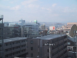 特になにもないのだが、ベランダからの風景です。 一部の人は知っていると思うが、地下鉄泉駅の近く に寮があります。パルハウスOKIなんて言う少し恥 ずかしい名前です。 駅から歩いて5分(写真の左側に見えるイトーヨーカ ドウの向こう側が駅) のため周りは結構高そうなア パートがいっぱい建ってます。その中にちと古目の |