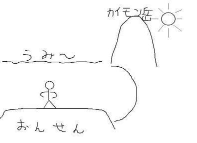 <夏休みの絵日記> 先日、鹿児島の山川町に行ってきました。目的は露天風呂♪? あるBARにて隣りに座った方から、『あんな景色はなかなか見られませんよ〜』って 聞いていたもんで。 いや〜、その言葉に偽りはありませんでした。 本当に気持ちよかったですわ!! 爽快!! と言うことで、その状況を絵日記風にしてみます。(ヘタクソで申し訳ない。笑 右手に開聞岳、左手に大隈半島、正面は錦江湾でその向こうは太平洋〜!! 景色は壮大、海風は気持ちいいし、 私、決して露出癖があるわけではないが、 思わず仁王立ちしてしまいました。 ![]() あまりに気持ちがいいと、人間の隠れた本性が現れるのであろうか? 景色を眺めながら、つい出た言葉が、 『ほら、どうだぁ〜〜』 おまけに、この海は沖縄へつながっているんだねぇ〜 と感慨にふける。 ・・・・ま、すっぽんぽんで感慨にふけられても困るだろうが。 |