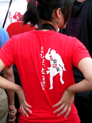 | -------------- ◆ 8月5日(土) -------------- にゃっす! ギャル(古っ)3人を引き連れ 車で1時間 行ってきました 日向ひょっとこ夏祭り2006 ![]() ひょっとこ なんで 「ひょっとこ」 って言うの? ちょいと調べて見ると あの口を尖らした奇妙な顔の男の名前がヒョウトクだったとか その他色々由来はあるようです。 (あとは長くなりそうなので止め!笑) ![]() そして 日向のひょっとこ踊りは 稲荷大明神の使い(狐)が 子宝祈願に訪れていた美人のオカメにひとめぼれして 連れさろうとした。(はい、拉致ろうとしたんです。) そのときの動作が愛嬌タップリであったことに 踊りの由来があるらしい。 ってことで ここのひょっとこ踊りは 先頭に狐、その次にオカメ そしてその後から オカメの旦那評助や村人(?)が続きます。 ![]() ま、そんな話は抜きにして このひょっとこ踊り 見ていて楽しい あのお気楽な振り付けは私の心に響くものがあり 人間のエネルギーを感じます ![]() 去年の青森ねぷた にも感動したが これもまた素朴でユーモアがあり 伝えていくべき郷土の踊りやなぁ あ、久々のピンボケ写真を近々UP予定です。 はい、沢山の写真を撮りましたが ほとんどピンボケでちた。 だって 暗いところでの写真は難しい上に ひょっとこがじっとしちょらんちゃもん! (踊っちょるのやからあたりまえか 笑) |
