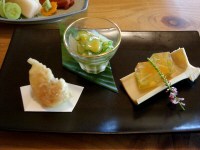| -------------- ◆ 8月22日(火) -------------- にゃっす! 本日はちょい遅めの夏休み 心待ちにした休日を有意義に過ごすぞ! はい。 ってことで 真由美さんと一緒に綾町に行ってきました。 ![]() ![]() ![]() ![]() 精進料理のお店 『美菜食膳 古嶋』 ここマジでお奨め! 料理がどうのこうのよりも、この心からリラックスできる雰囲気が最高 店内は土壁に囲まれ、落ち着いており 木陰の向こう側に田んぼが見える風景 昔から知っている家にくつろぎに来たかのような心地良さがあります。 こんなにリラックスできるお店は初めて。 癒されるわ〜 真由美さんとふたり 「落ち着くねぇ〜」 を連発 ![]() ![]() ![]() ![]() (左上) 前菜3種 イチジクの揚げ出しって発想がおもしろい (右上) 大豆グルテンのチキン南蛮風 普通に出てきたら変わった肉やね?って言いそう (左下) 冷たいお茶!&ノンアルコールワイン(エルダーベリー) 味的にはファンタ・グレープ!? (右下) ドラゴンフルーツとブラックタピオカのデザート さっぱりと美味しくいただきました その他、茄南蛮、抹茶豆腐、海藻のお刺身風、古代米の冷やし中華風 そんな感じだったっけ? あ、あと、ささげ豆ごはんかな 以上、精進料理と言ってもよくあるガチガチのものではないので 気軽に健康食を楽しめるますよ 最後に ひとつ難点を言えば、この店の住所 ナビで出てきません。ってことで探すのにちと苦労した。(笑) 楽しい大切な時間を過ごし さ、明日からまたガンバロって気持ちがフツフツと湧いてきております。 |